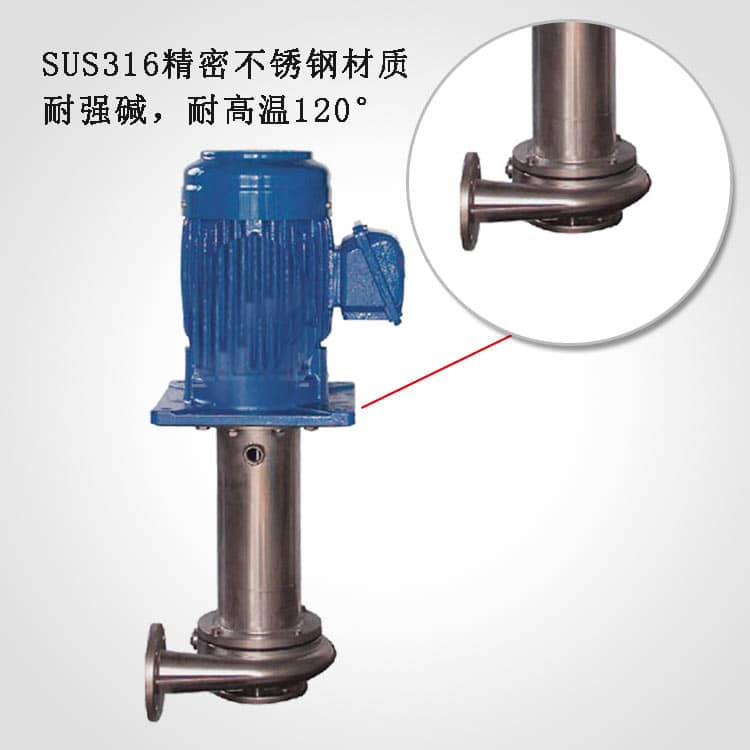 不銹鋼液下泵的產(chǎn)品 勢: 1. 采用不銹鋼316或鈦金屬精制鑄造成型,無沙孔問題,葉輪效率高。 2.電機采用臺灣東元電機,加大規(guī)格軸承,有效減少泵的偏振。 3. 適合各種酸堿液、微酸液循環(huán)使用,耐高溫。而且泵浦體積較小,適合槽內(nèi)槽外設(shè)計使用。4.采用無機械密封設(shè)計,克服離心泵泵的不能干轉(zhuǎn)或空轉(zhuǎn)的要求。因此,在吸入口阻塞或出口阻塞或液體有結(jié)晶的情款下都不會發(fā)生泄漏的情況。從根本上解決了“跑,冒,滴,漏”的問題。