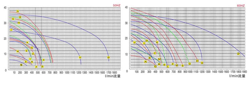 塑寶TD型耐酸堿立式泵型號(hào)性能曲線圖: